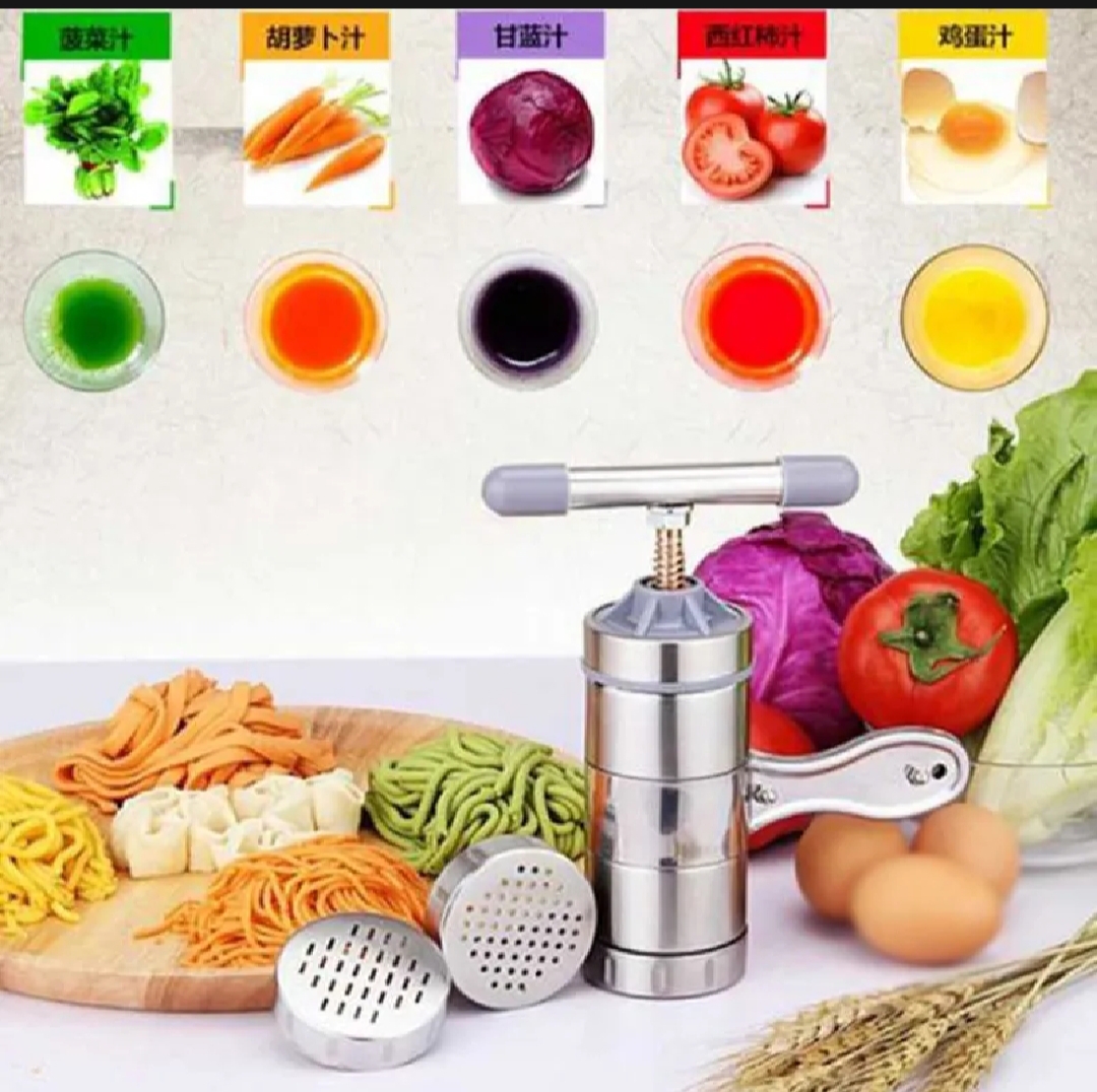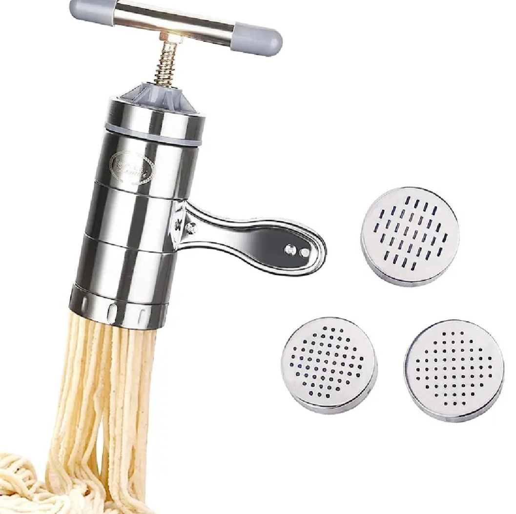 Create fresh, healthy pasta at home with the Manual Stainless Steel Noodle Maker. This durable, rust-proof press comes with multiple molds to make various noodle shapes instantly. It is easy to operate, simple to clean, and perfect for anyone who loves authentic, preservative-free homemade noodles.