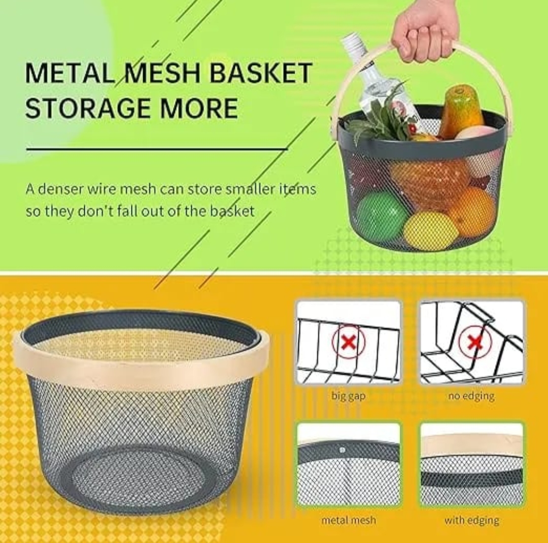 • Breathable Design: The fine metal mesh promotes 360-degree airflow, preventing moisture buildup and keeping your apples, oranges, and grapes fresh and crisp.