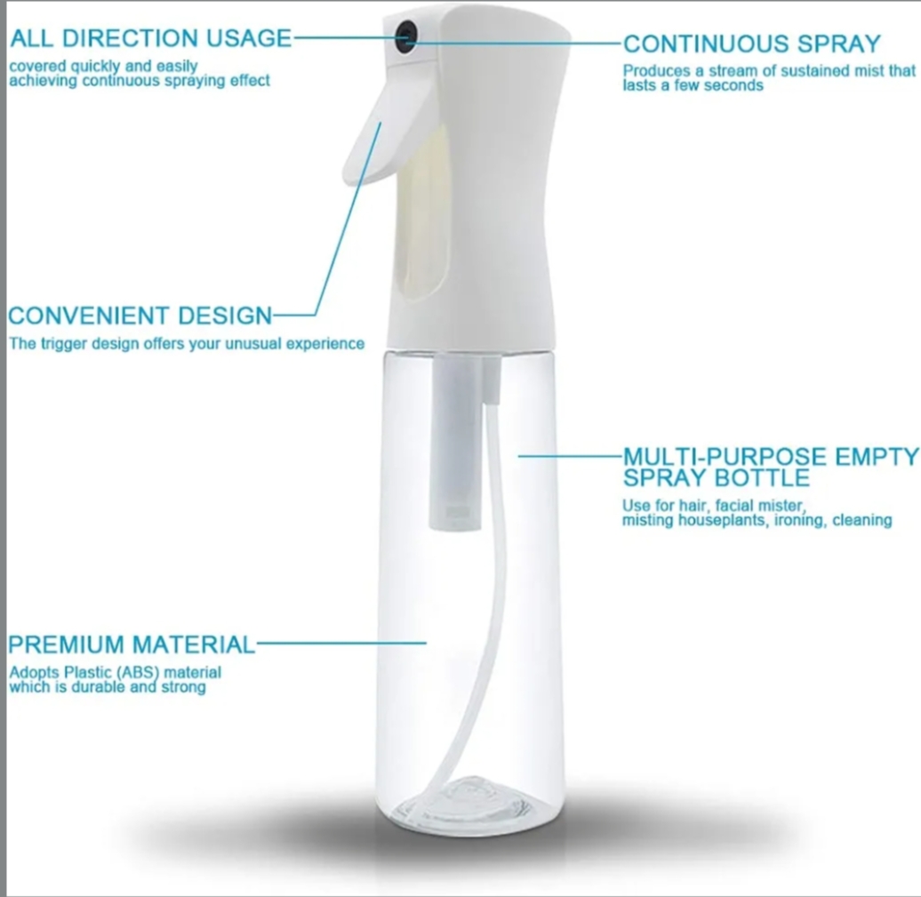 Continuous Spray: One light squeeze produces a stream of sustained mist that lasts for several seconds.
