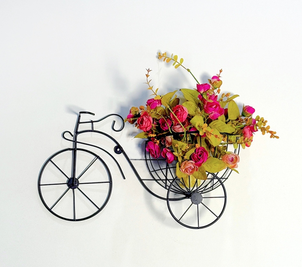 Pedal your way to better home decor with the Retro Cycle Wall Hanging Planter. Designed to look like a classic vintage bicycle, this wall-mounted rack is as sturdy as it is stylish. The integrated wire basket provides a secure home for your favorite potted plants, making it a standout feature for entryways, patios, or living rooms.
